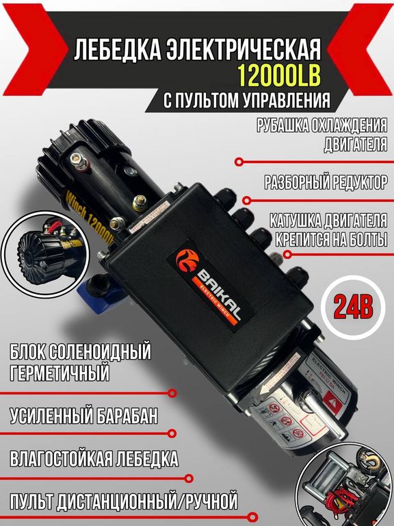Представляем Вашему вниманию электрическую автомобильную лебедку китайского производства Electric winch 12000 lbs 24v. Она будет вам верным помощником как во время автомобильных туров, так и в обычной жизни.